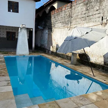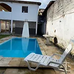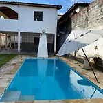 Az 1 hálószobás Casa Branca Villa Caucaia tartó zkodó vendé gek egy úszómedencével ellá tott teraszon pihenhetnek.